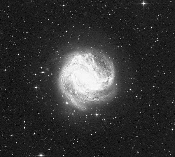 Unweit der Deichsel des Großen Wagens findet sich die markante und große Spiralgalaxie M 101 (NGC 5457), im Englischen Pinwheel genannt. Sie ist neben M 33 und M 51 eine der bedeutensten Spiralgalaxien am nördlichen Himmel und eine der wenigen Galaxien, bei der man Spiralarme und sogar einzelne HII-Regionen in einem Amateurteleskop erkennen kann. M 101 ist die hellste Galaxie einer 9 Mitglieder umfassenden Gruppe. Damit ist diese Galaxienansammlung durchaus vergleichbar mit unserer Lokalen Gruppe. Durch Aufnahmen des Hubble Space Telescope konnten inzwischen einige Cepheiden in der Galaxie entdeckt und damit die Entfernung relativ genau zu 27 Millionen Lichtjahren bestimmt werden. Daraus läßt sich auch der Durchmesser der Galaxie zu 190.000 Lichtjahren ableiten. Damit ist M 101 rund doppelt so groß wie unser eigenes Milchstraßensystem. Entdeckt wurde M 101 übrigens am 27. März von Pierre Méchain, der sie als Nebel ohne Sterne, ziemlich schwach und sehr groß beschrieb.